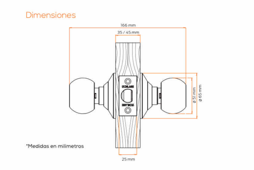 * Para puertas de 35mm a 45mm de espesor.