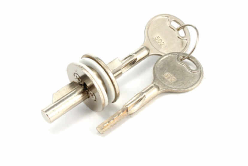 * Cerradura boquete y perforación para vitrina corrediza.