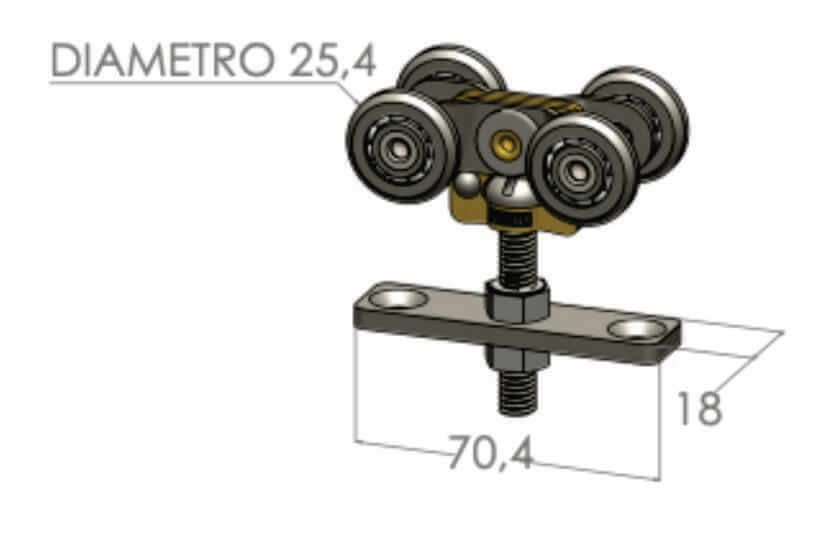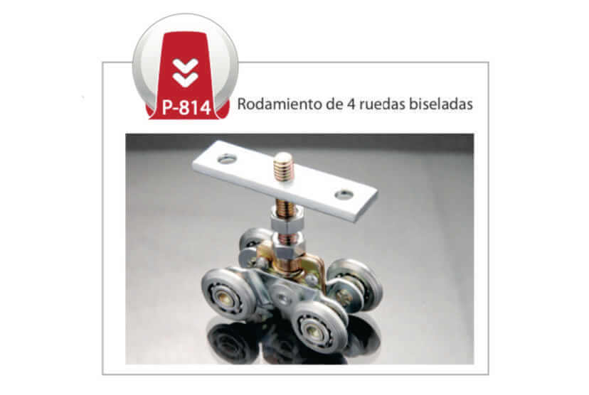 * Diseñada con 4 brazos escualizables y 4 rodamientos D 1” metálicos. Utilizables en puertas corredizas, pasantes o bipartidas.