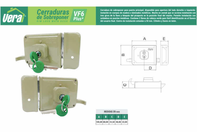 * Para puertas metálicas y de madera de espesores entre 35 mm y cierre de 3 vueltas de giro.
